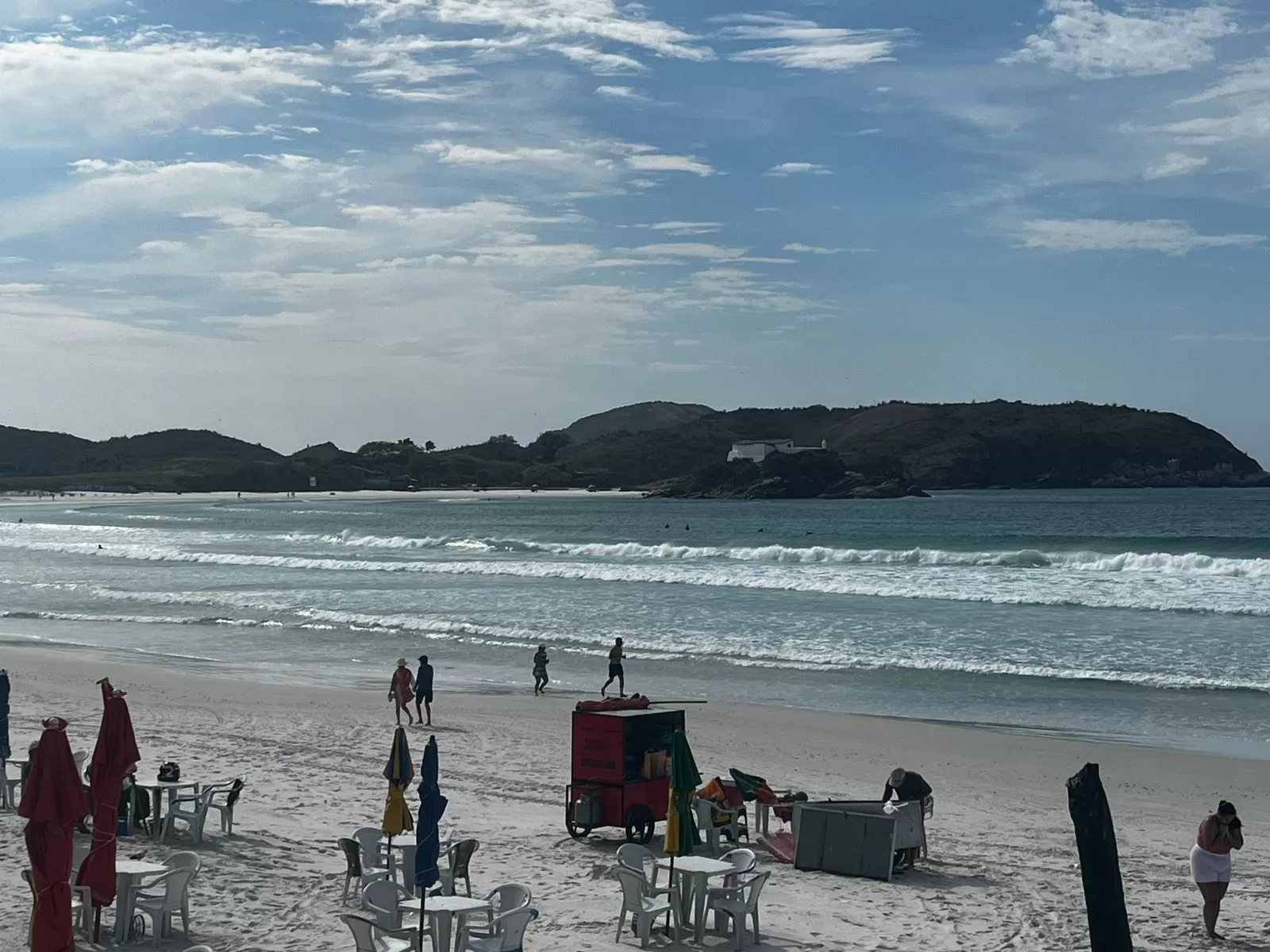 Nas praias, a altura das ondas varia entre 0,50 m e 0,90 m, com destaque para Peró e Unamar, onde as condições são mais favoráveis. Nas ilhas de passeio, a ondulação pode chegar a 1,50 m, enquanto em mar aberto, as ondas variam entre 1,60 m e 1,90 m, com intervalos de 6 segundos.